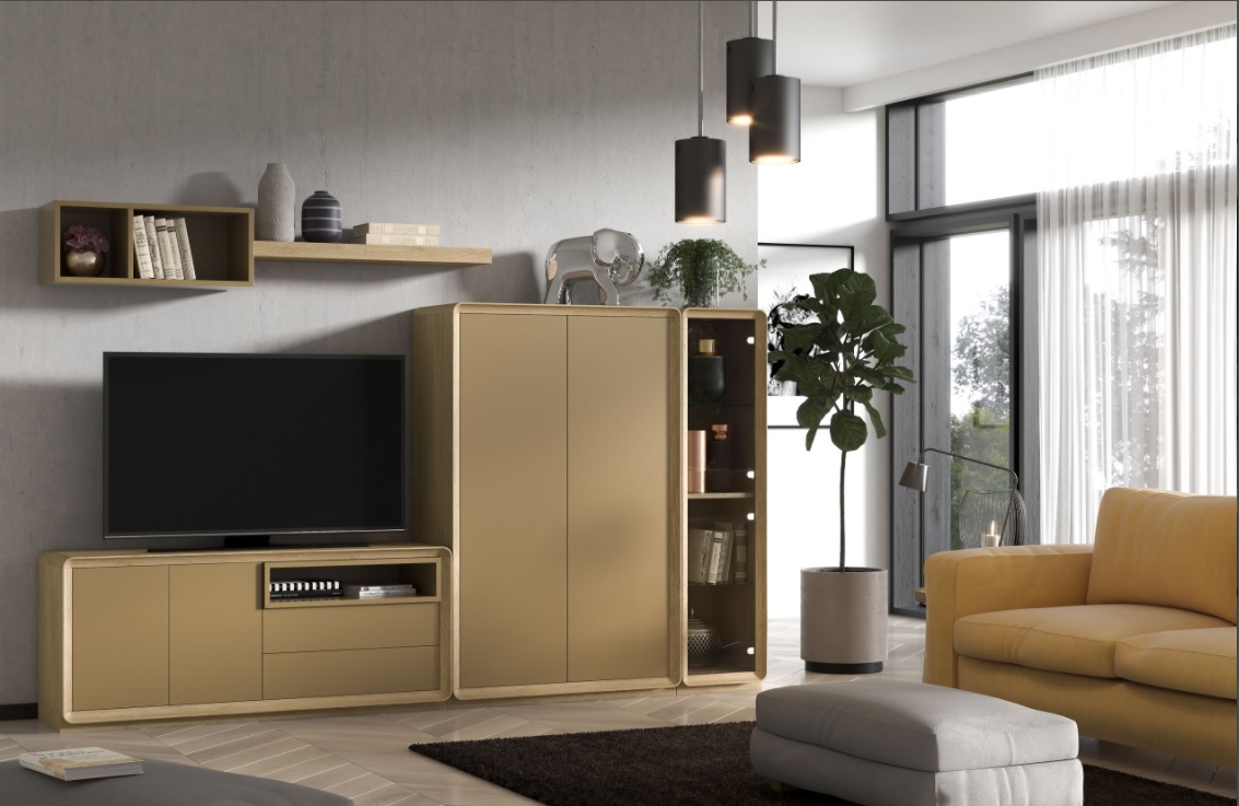 Salones con las esquinas en curva en chapa de roble natural con muchas opciones de color.